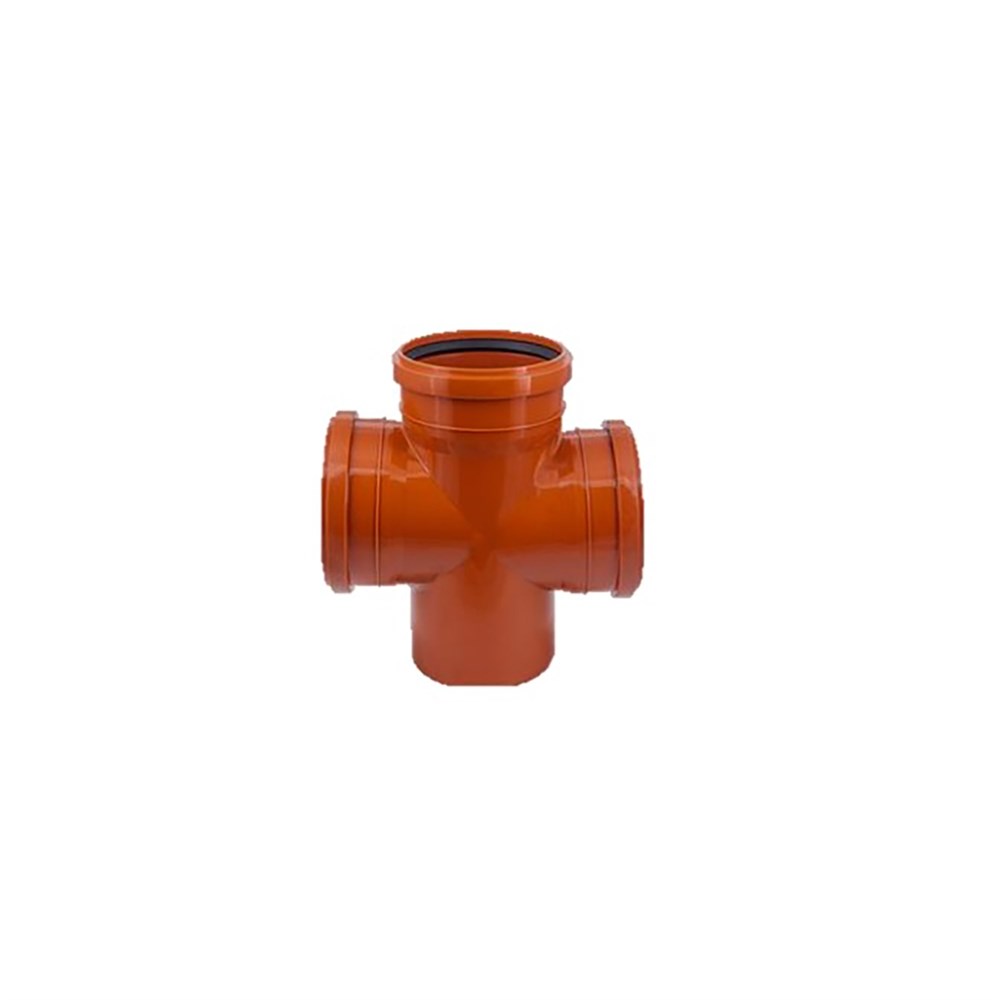 Крестовина для наружной канализации предназначена для подключения к основному трубопроводу дополнительных ответвлений в одной плоскости.