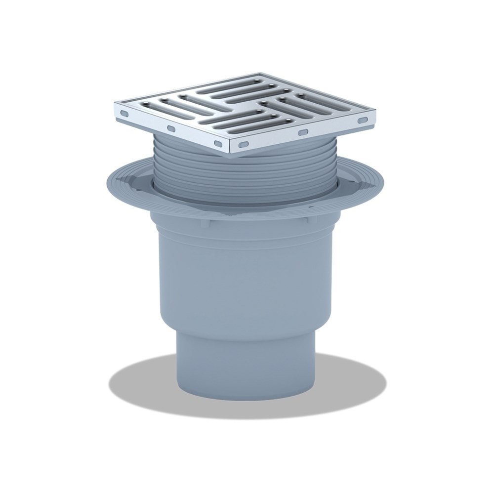 110 трап с верт. спуском, рег решетка 150х150 нерж. АНИ пласт TA1712