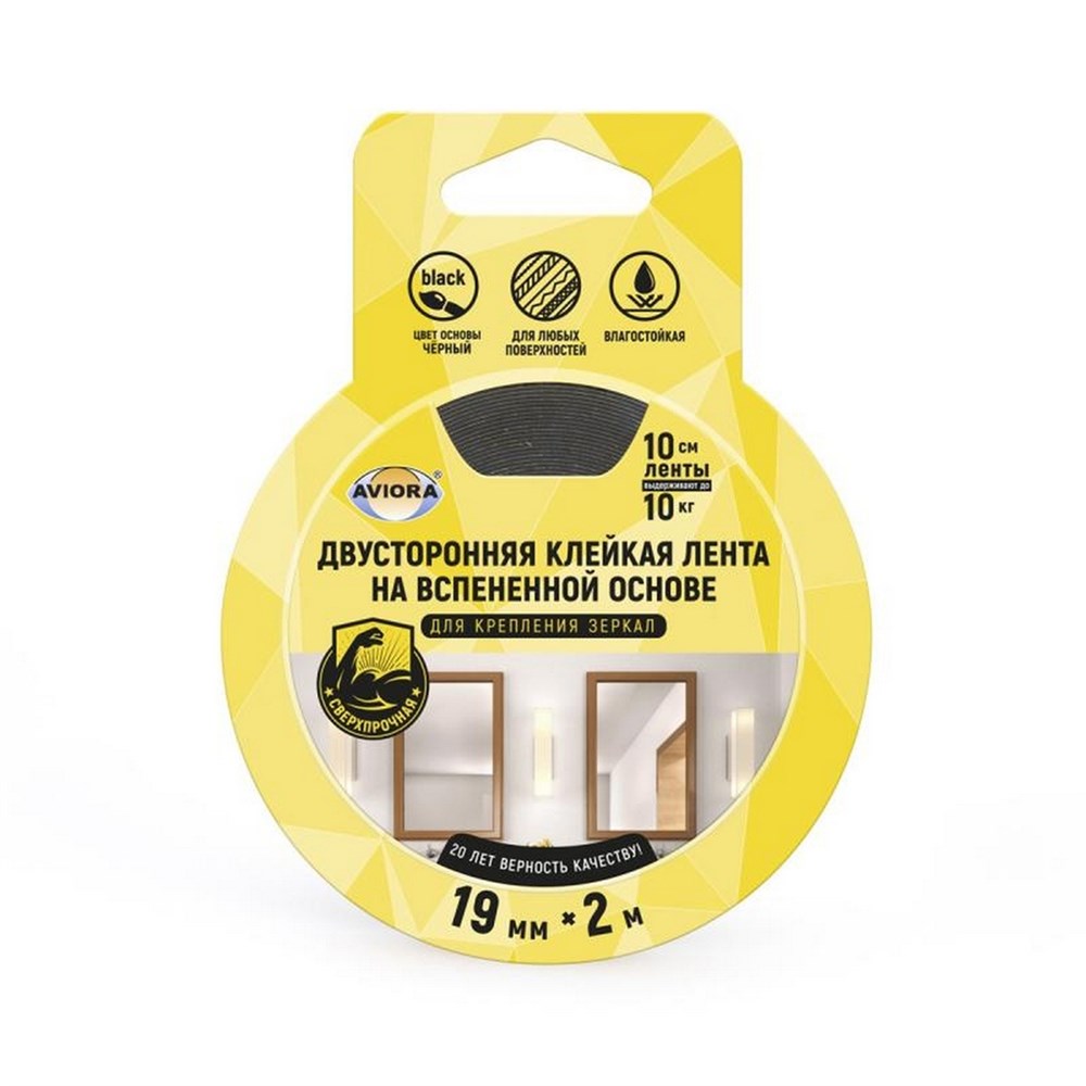 Лента двусторонняя сверхпроч. кл. на вспен. основе для креп. зеркал AVIORA 19мм*2м
