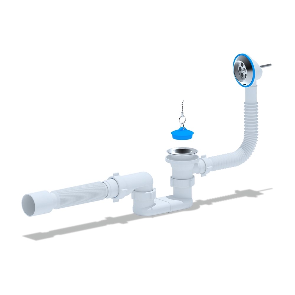 Сифон E055 АНИ пласт для ванны с решеткой слива D 70мм и выпуском 1 1/2 комплектуется гибкой трубкой 40*50 мм для отвода в канализацию.