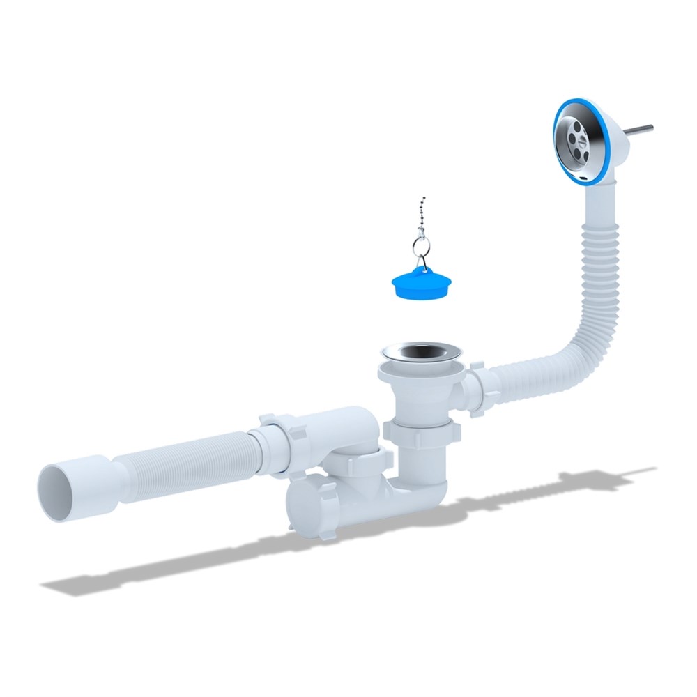 Сифон E255 АНИ пласт для ванны с решеткой слива D 70мм и выпуском 1 1/2 комплектуется гибкой трубкой 40*50 мм для отвода в канализацию.