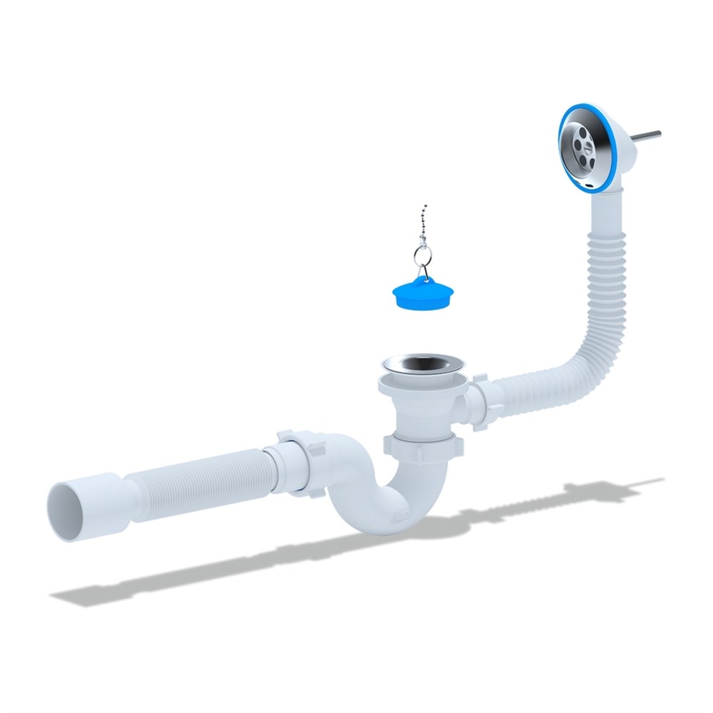 Перелив д/мойки 3 1/2" (112 мм) с нерж. сеткой прямоуг. E155 (винт, шток, ручка-латунь) UNICORN