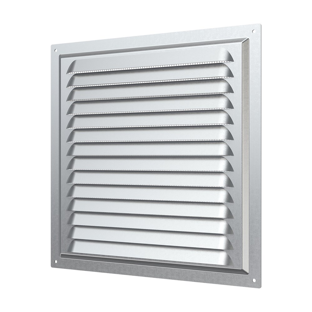 Вентиляционная решетка МЦ изготавливается из оцинкованной стали. Имеет наклонные жалюзи и антимоскитную сетку для защиты от насекомых. Сетка устанавливается в специальном углублении.