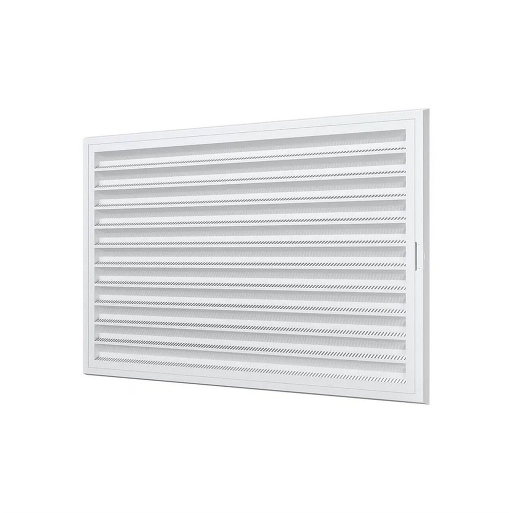 Вентиляционная решетка имеет наклонные жалюзи и оснащена защитной сеткой от насекомых.