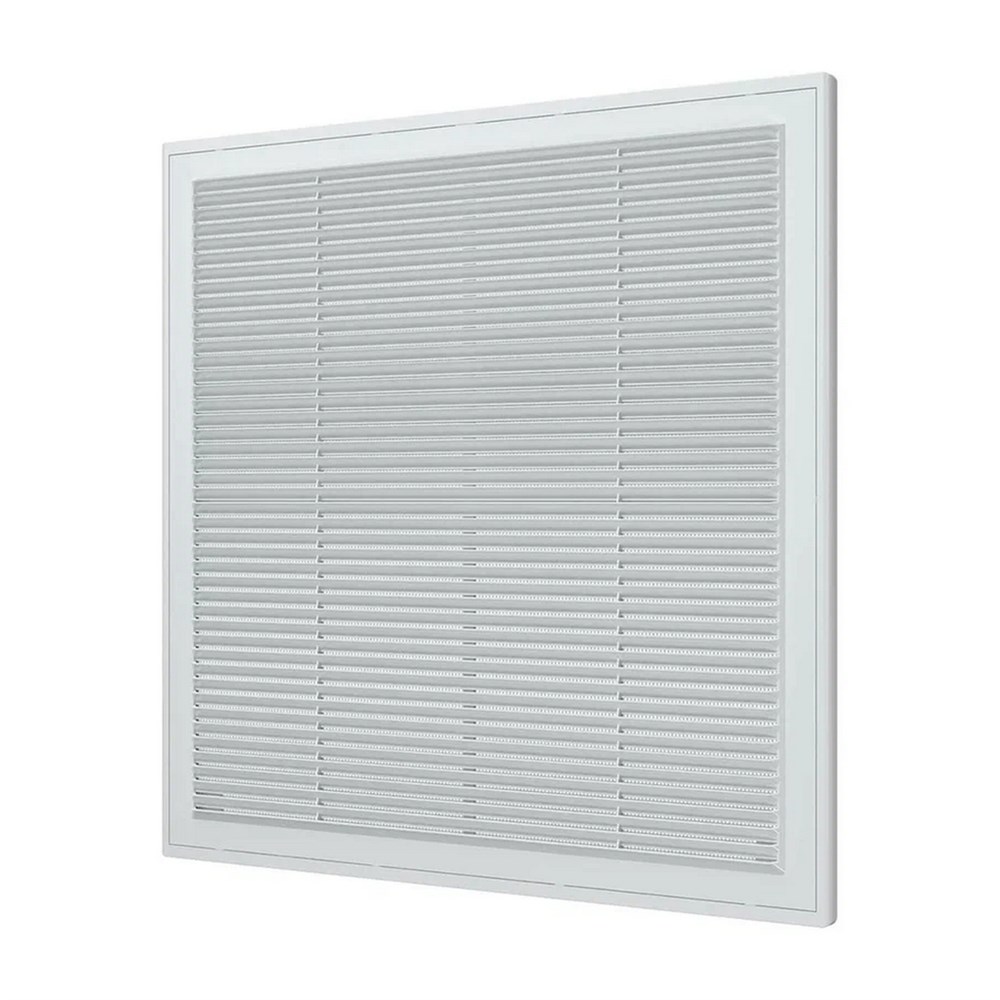 Вентиляционная решетка имеет наклонные жалюзи и оснащена защитной сеткой от насекомых.