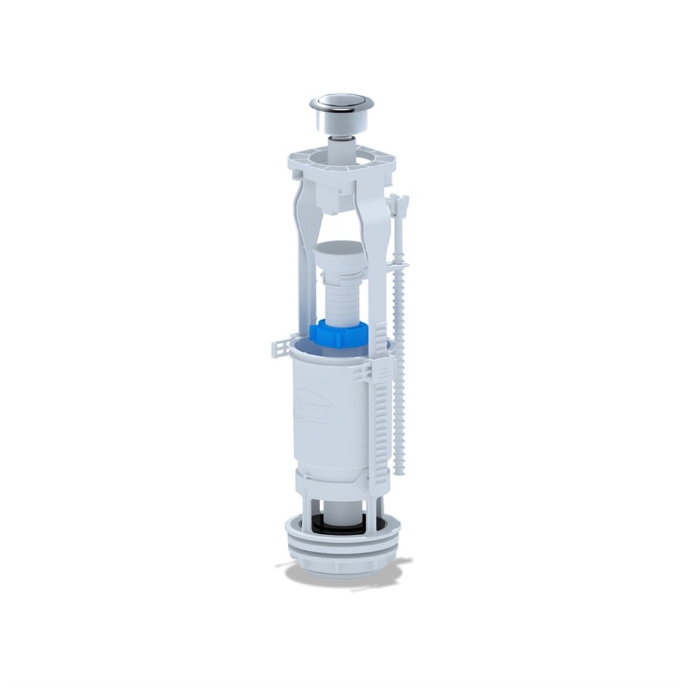 Сливной механизм бачка унитаза АНИ пласт WC7030M с металлизированной кнопкой и одним режимом слива имеет возможность регулировки по высоте от 290 до 410 мм.