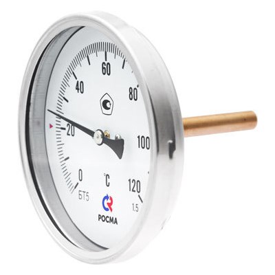 Термометр 63х1/2 120С БТ-31.211 шток 46мм (осевое аксиальное подкл.,корпус сталь) РОСМА